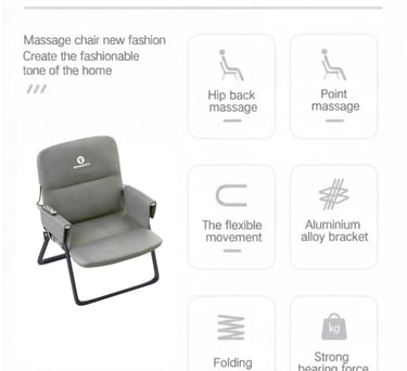 Kenyamanan Premium: Dilengkapi sandaran punggung dan fungsi pijat bawaan, kursi ini memberikan sensasi relaksasi layaknya spa tanpa memakan tempat atau menghasilkan kebisingan berlebih.